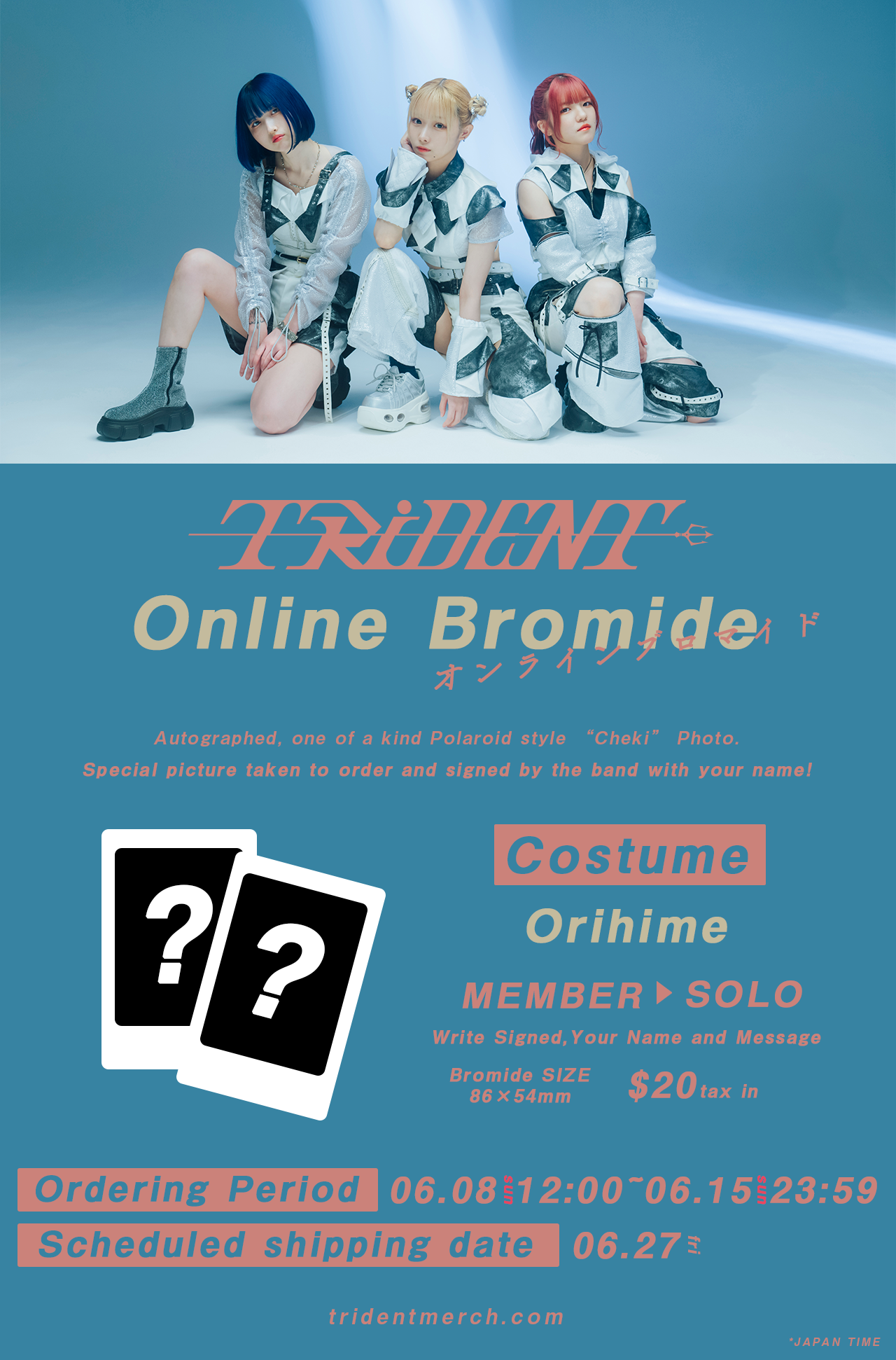 Receive a rare, autographed TRiDENT "Cheki" polaroid photo signed by your chosen band member and with a special message including your own name or any customizable nickname you prefer! Add your name in the field above, checkout, and a TRiDENT member will prepare a 1 of a kind collectable, signed photo just for you.